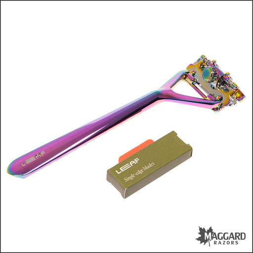 Leaf Single Edge Multiblade Pivoting Head Razor, with Starter Blades - Prism Color